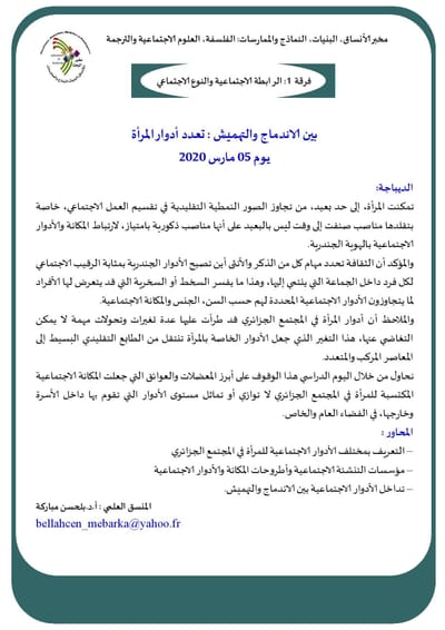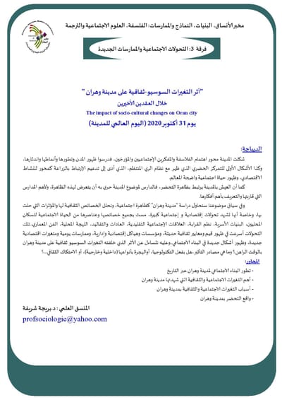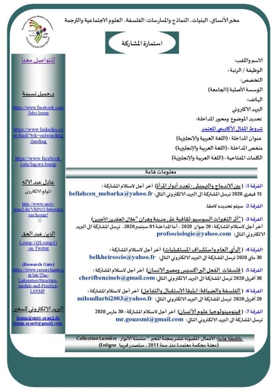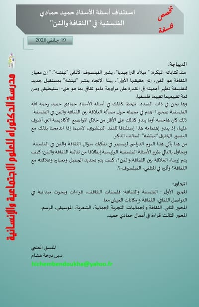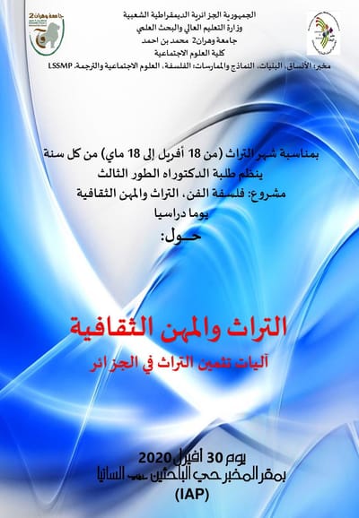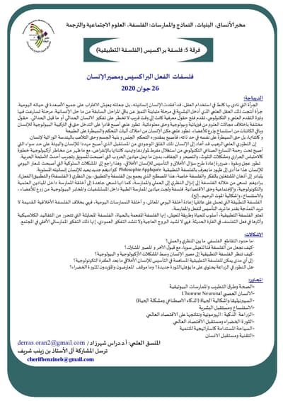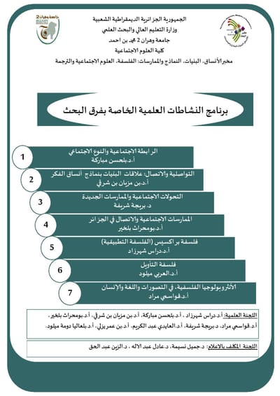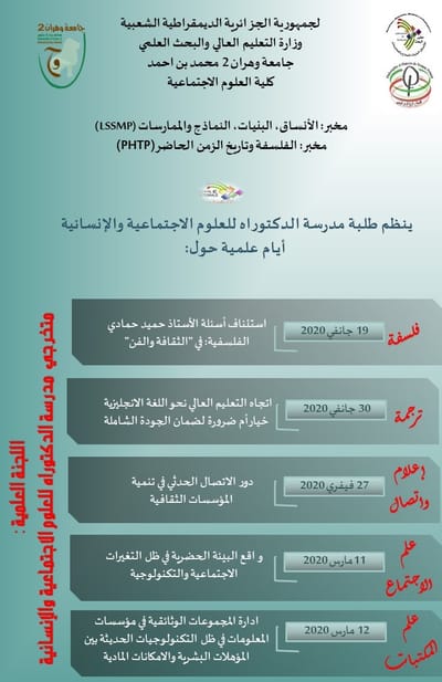 سلسلة لقاءات يعقدها: مخبر الأنساق، البنيات، النماذج والممارسات (LSSMP) مخبر الفلسفة وتاريخ الزمن الحاضر ( PHTP ) بجامعة وهران2 محمد بن احمد والجمعية الجزائرية للدراسات الفلسفية